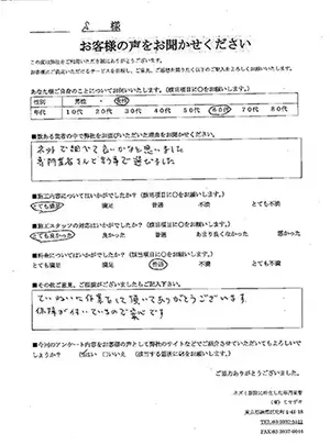 その後の発生をも防ぐ業者として高い評判を頂いております。